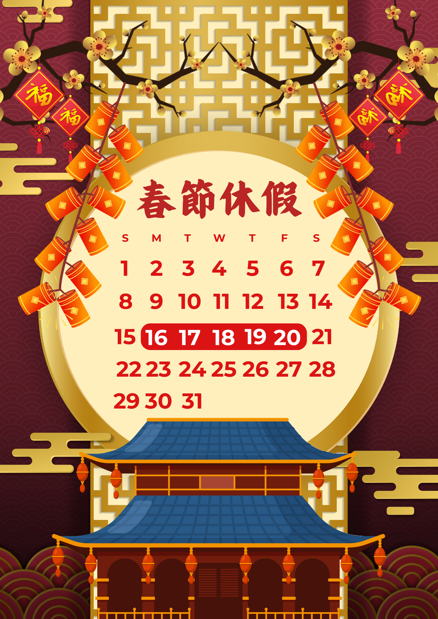 2/16(一)-2/20(五)為農曆春節休假日